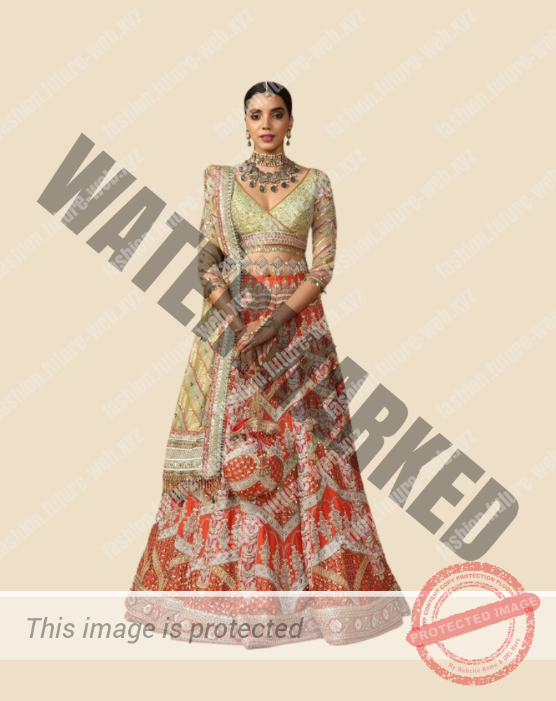 Bridal Lehenga in Multicolor Resham and Sequin with Sequin and Zardozi Embroidered Brocade Blouse. The Dupatta Is Made From Banarasi Brocade And Features An Antique Embroidered Border. The Complete Set Is Adorned With Multicolored Stones And Crystals.